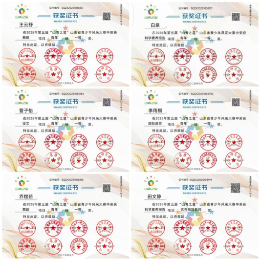 鲁网11月7日讯近日,由共青团山东省委主办,山东省精神文明建设办公室、山东省关心下一代工作委员会、山东省文学艺术联合会、山东省科学技术协会、山东省体育局、中国少年先锋队山东省工作委员会、山东省学生联合会协办2025年第五届“山青之星”山东省青少年风采大赛公布了获奖名单。齐鲁医药学院推报的作品在书画、演讲、声乐、舞蹈、国际语言、征文、科学素养报告七个项目中获奖49项、共计111份证书。其中一等奖5项、二等奖12项、三等奖14项、优秀奖18项,优秀指导教师奖5项。
